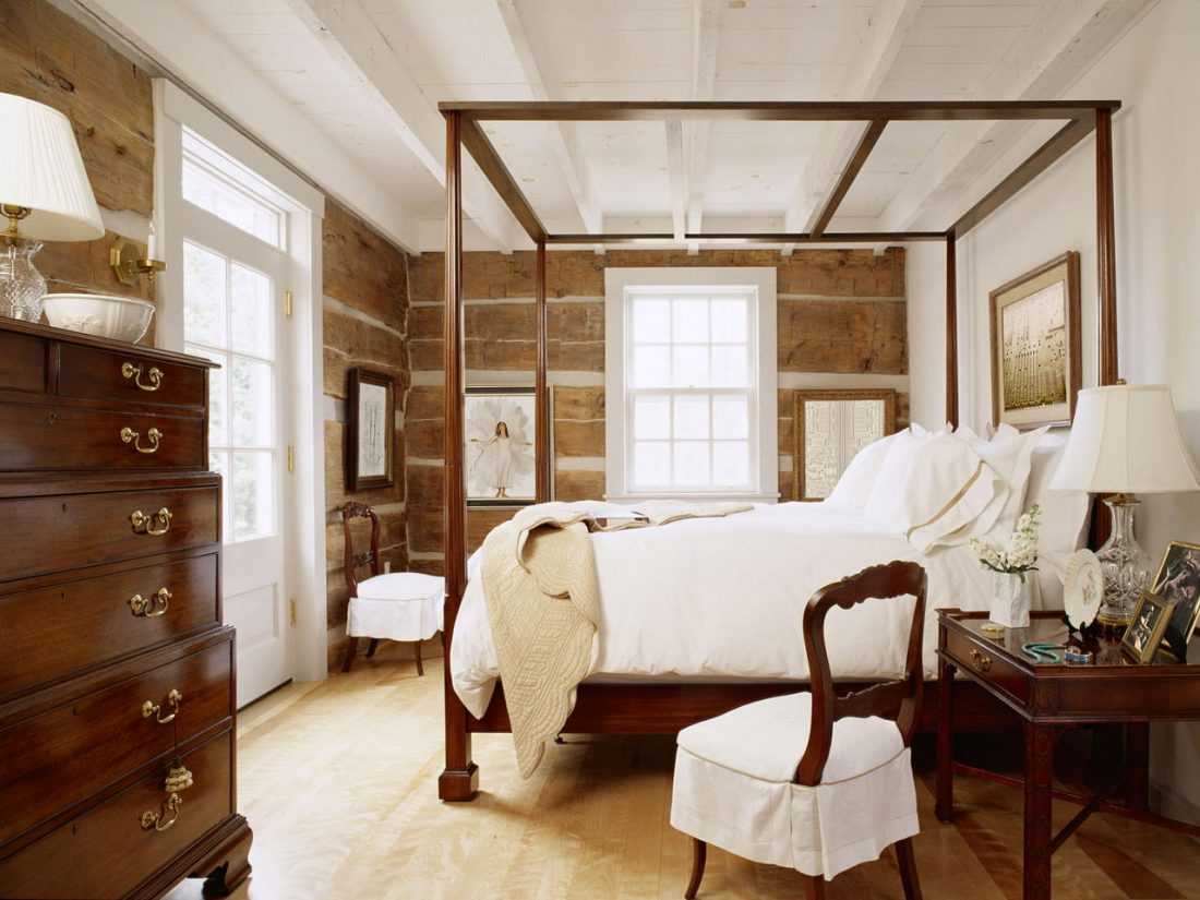 В спальне винтаж также будет гармоничным и интересным. Комната для сна и отдыха может быть достаточно романтичной, нежной, умиротворенной. Здесь уже нужно отказаться от яркой цветовой гаммы в пользу уравновешенной, сдержанной палитры. Стены можно покрасить или оклеить обоями. В спальне уместны нейтральные тона для стен с включением ненавязчивого рисунка. Но можно выбрать и достаточно темный. Оптимальным считается синий и натуральный древесный. Первый расслабляет, а второй создает благоприятную атмосферу, способствующую умиротворению и качественному отдыху. Использование природного массива дерева позволит создать в комнате здоровый микроклимат, особенно если выбрать хвойные породы, которые выделяют в воздух фитонциды.