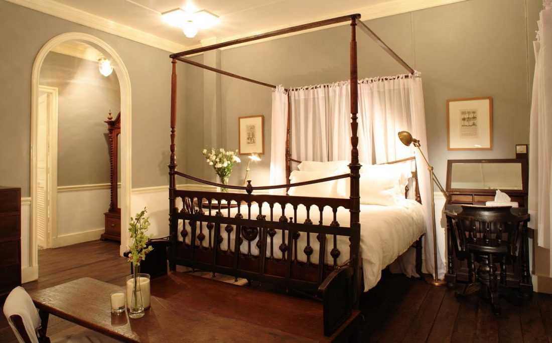 Конечно, центром любой спальни является кровать, и винтажная комната – не исключение. Спальное ложе должно быть резным, с гнутыми ножками, с резной спинкой. Оптимально выбрать достаточно массивную и большую кровать, иначе интерьер будет простым. Красиво смотрится балдахин, выполненный в той же палитре, что и вся отделка. Драпировка – традиционное украшение старинных обстановок, поэтом она уместна и здесь. Необязательно балдахин закрывать, но он придает комнате интимности и уюта.