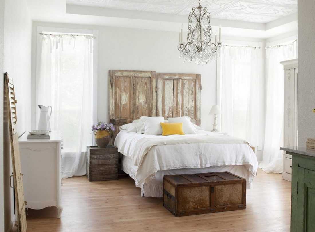 В спальне нередко винтад схож со стилем шебби-шик, который отличается ажурностью и обилием мелкого декора. В спальне можно посвятить целый стеллаж мелочам. Это может быть как декор, так и функциональные вещицы.