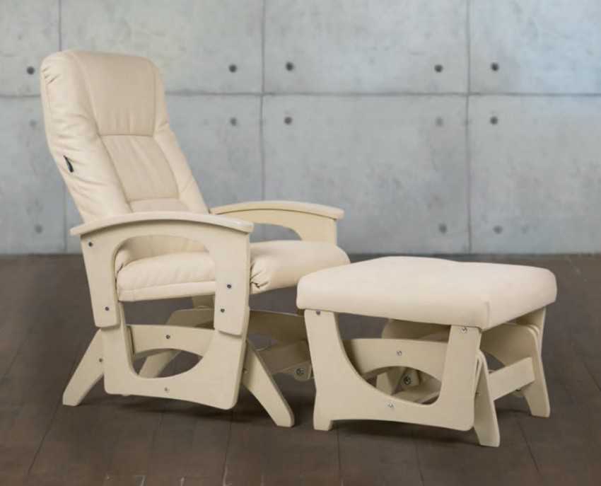 Для большего удобства во время отдыха можно приобрести кресло-качалку с банкеткой, или оттоманкой, на которой можно расположить протянутые ножки.