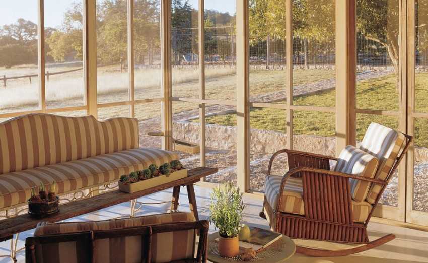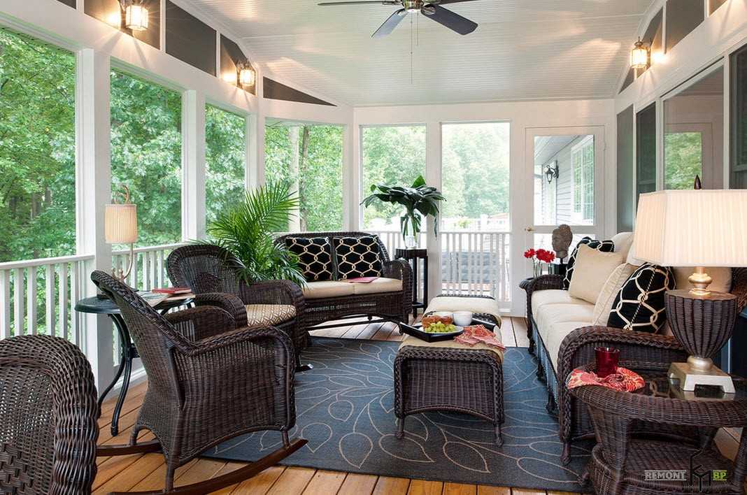 Уютным и стильным дополнением интерьера террасы частного дома станет плетеное кресло из лозы. Оно создает по-настоящему домашнюю атмосферу тепла и уюта. На открытом воздухе приятно расслабиться в теплый летний день или, кутаясь в одеяло прохладным вечером пить кофе и считать звезды.