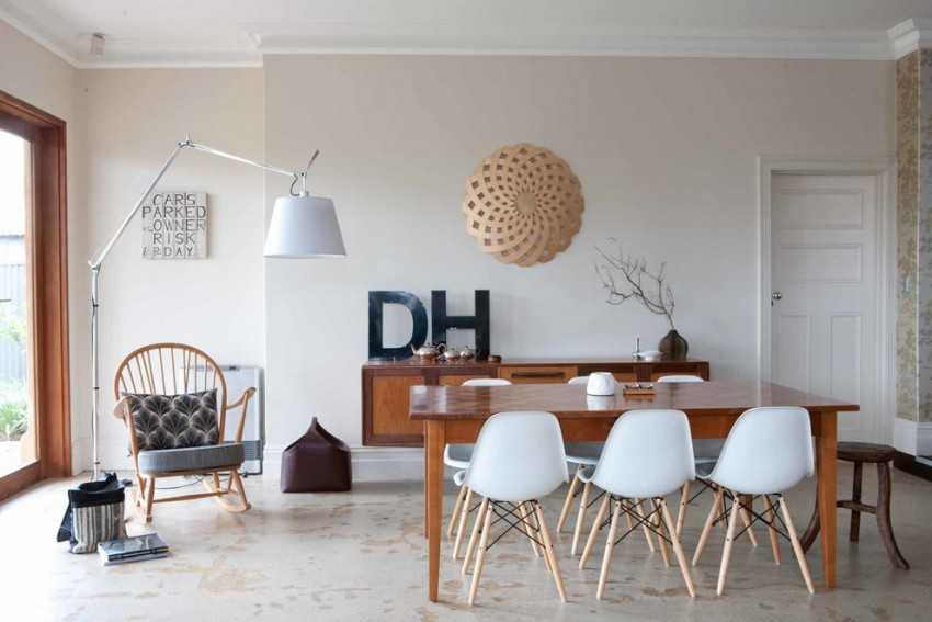 Однако из всех правил бывают исключения: например, металлическое кресло необычной формы, полностью выполненное из металла, может стать основным акцентом интерьера в стиле авангард.