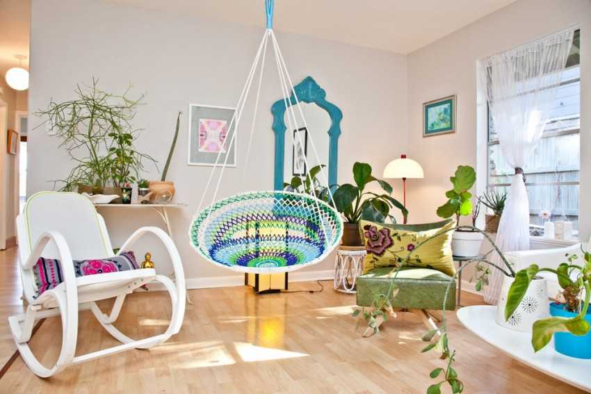 Подвесное кресло в интерьере – один из популярных сегодня видов