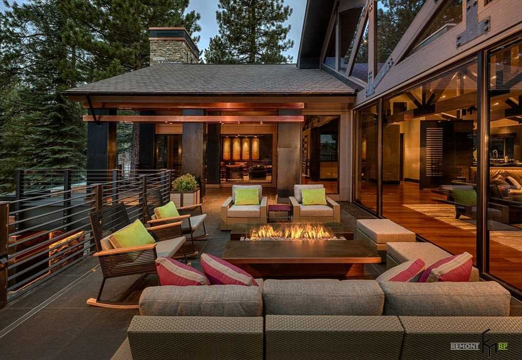 Можно расположить на террасе несколько кресел для всей семьи или для приема гостей.