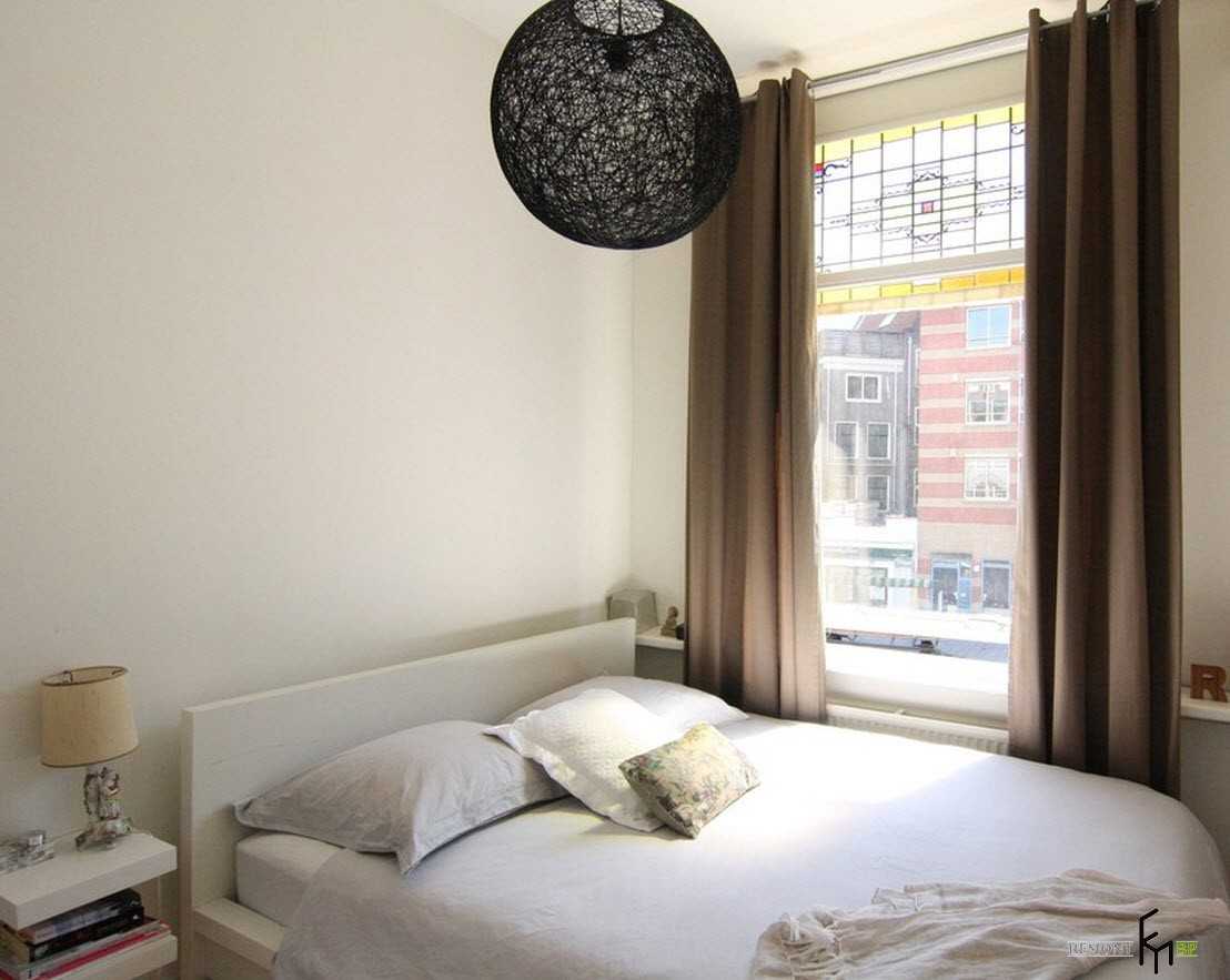 Дизайн с рассеянным светом. Не надо устанавливать большие светильники и люстры, у которых плафоны смотрят вниз. Для маленького пространства лучше подойдут точечные светильники, расположенные по периметру. Дополнительное освещение. Его можно установить возле кровати на мебели, например, лампы