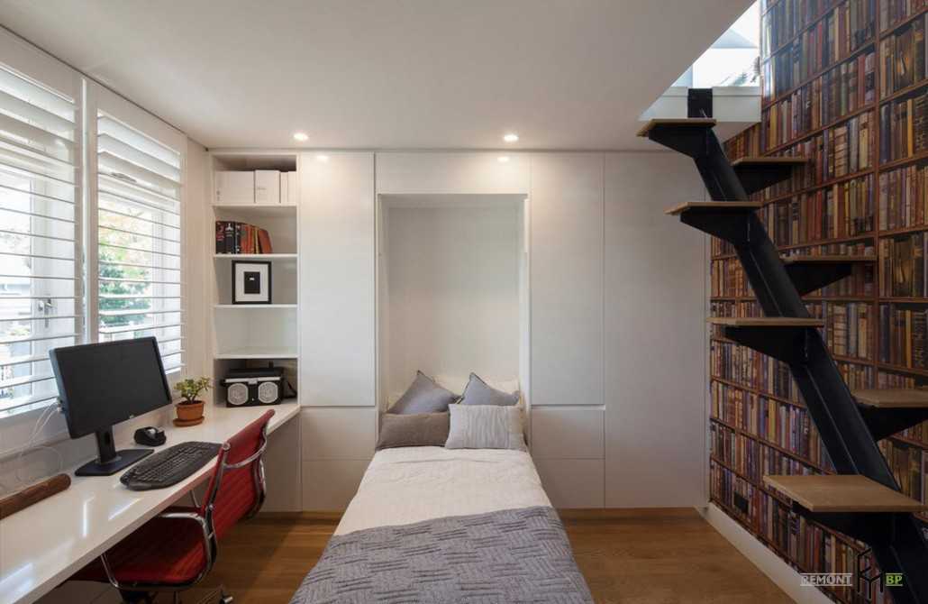 Удачным решением может стать кровать трансформер для малогабаритных квартир, если в комплекте с ней находится откидной механизм. Обычно их прикрепляют к стене.