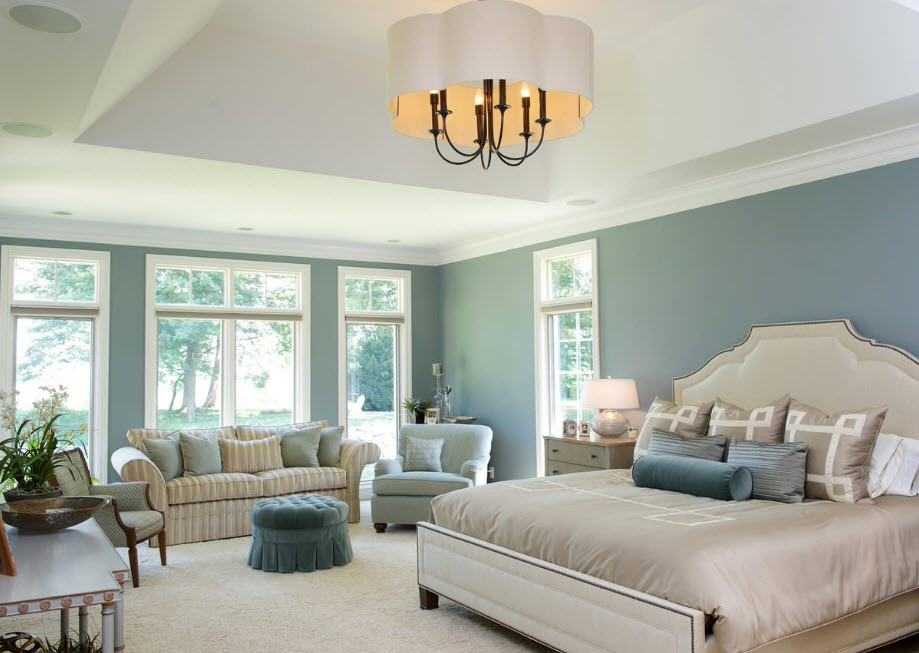 Нежно-голубой и бежевый в спальне – самое приемлемое сочетание для глаз, к тому же эстетично