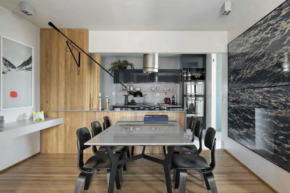В таких кухонных гарнитурах принято использование вместо обычных табуреток и стульев – массивные деревянные лавки, а вместо деревянной столешницы – каменную.