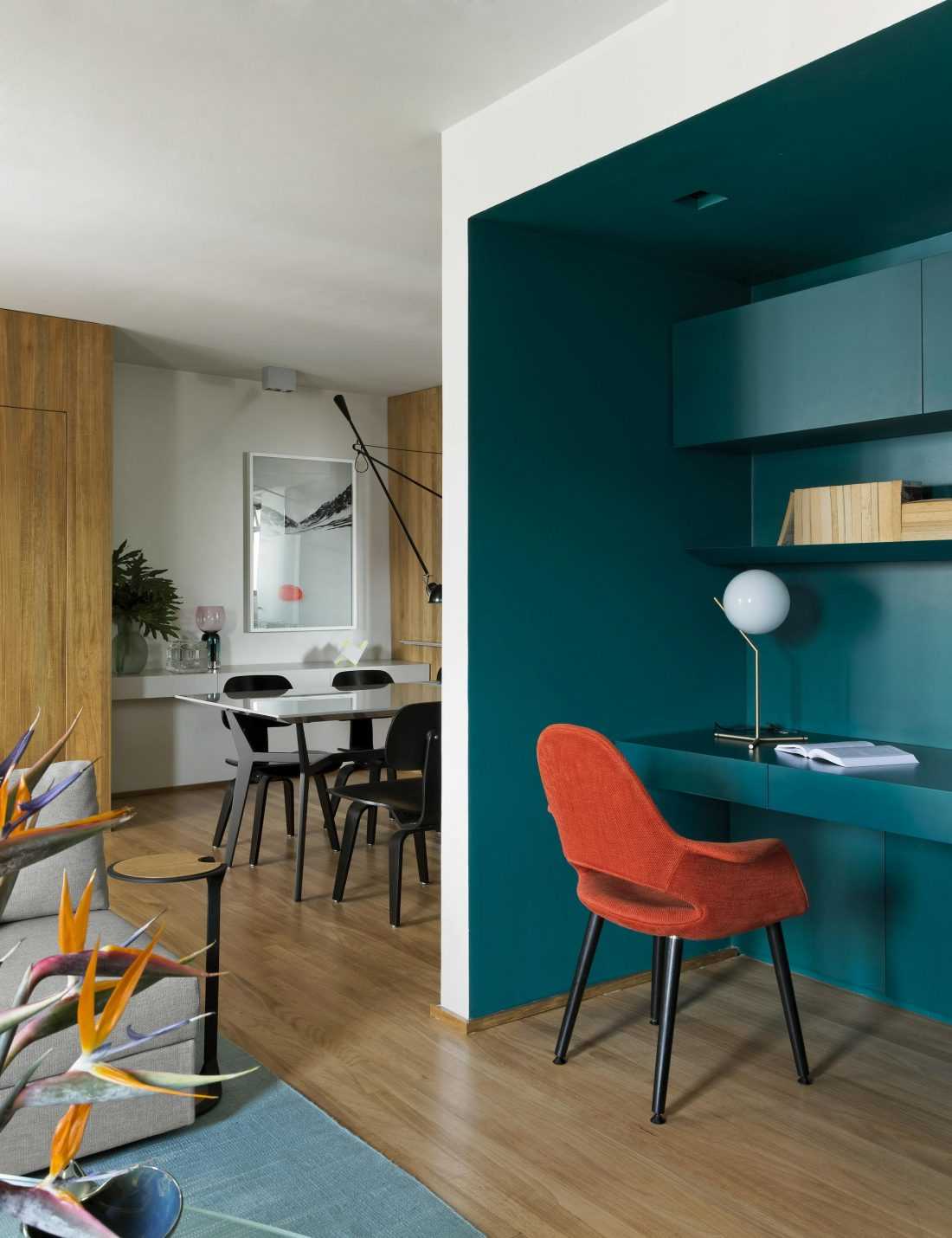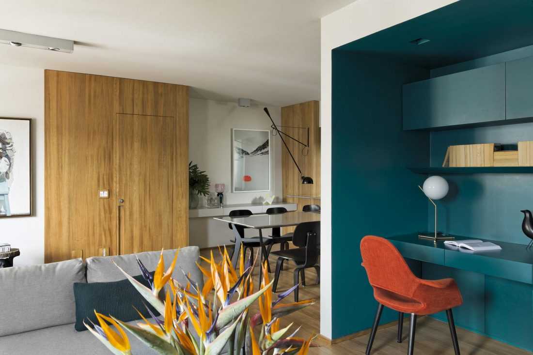 Данный цвет подходит для создания основательного, консервативного, не много строгого, но при этом спокойного и уютного интерьера.