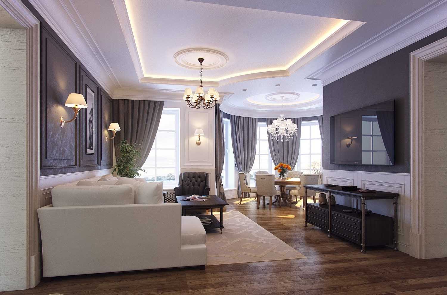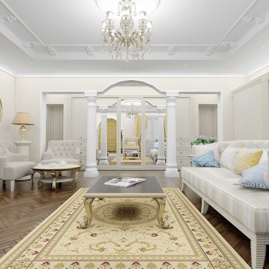 Светлые гостиные в классическом стиле: стильная лепнина и штукатурка
