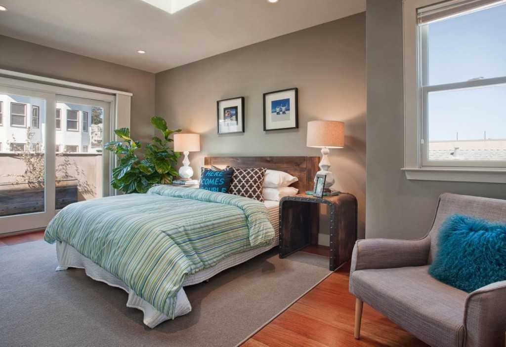Главный принцип – спокойствие, но нескучное. Стены оформляются в тонах пастели. Оригинальность проявляется в изысканном декоре, интересной мебели, красивом постельном белье.