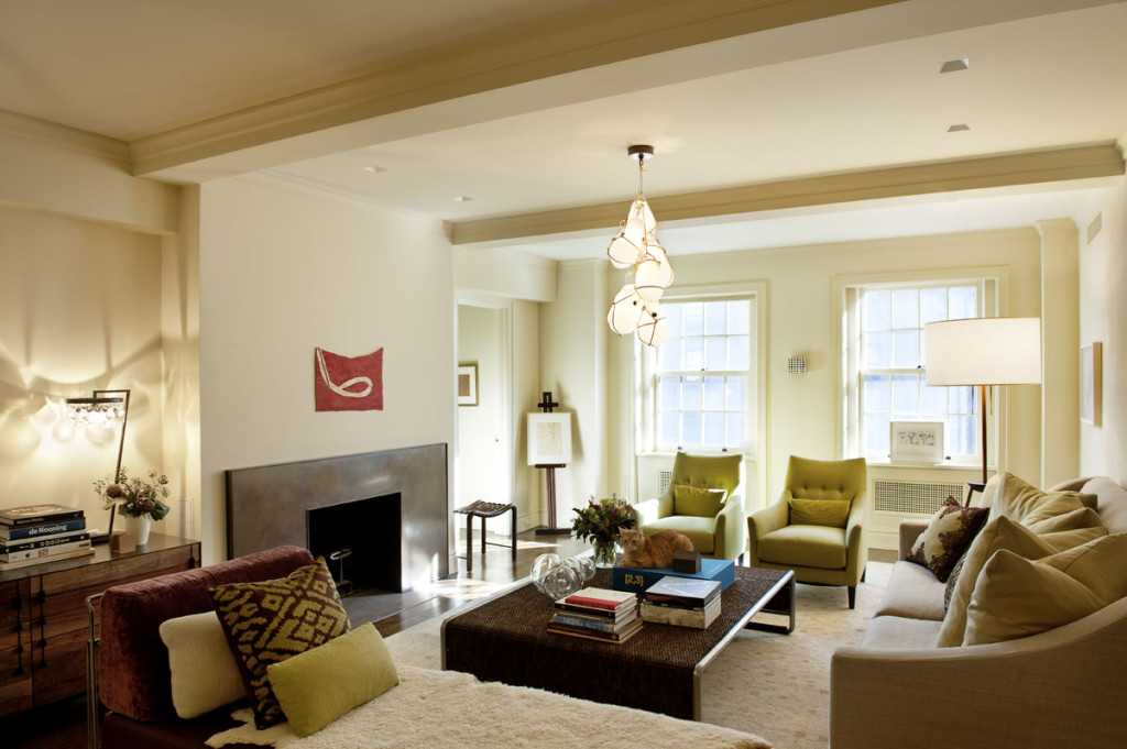 Гостиная — это помещение, которое нуждается в хорошем освещении. Если помещение просторное, то рекомендуется использовать, как минимум две осветительные точки.