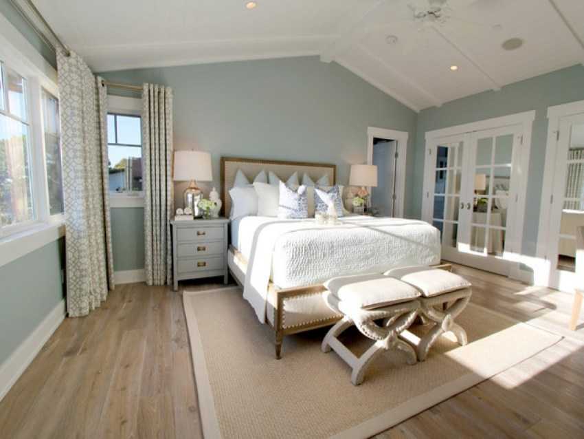 В таком случае шторы в светлой спальне могут быть чисто белого цвета. Другие элементы интерьера вполне могут быть выполнены в более насыщенных оттенках.