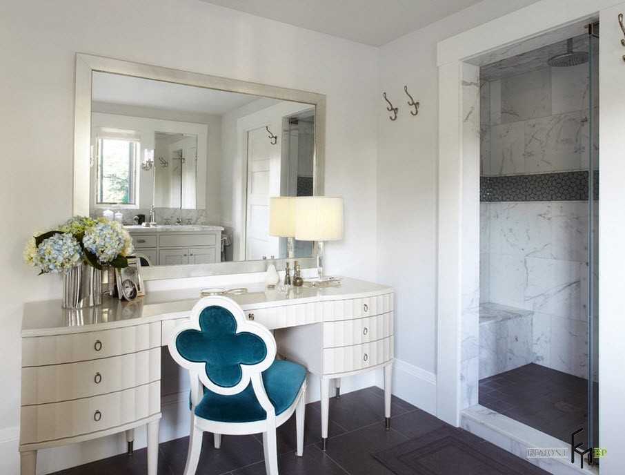 Еще один приятный бонус – ванна практически свободна, ведь женщина большинство процедур по уходу за собой выполняет за туалетным столиком.