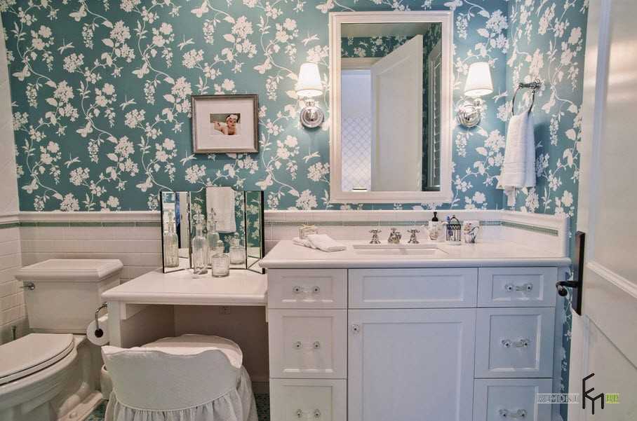 При дефиците свободного пространства в ванной комнате можно расположить туалетный столик и рядом с унитазом, хотя такое смелое месторасположение придется по душе не каждому: