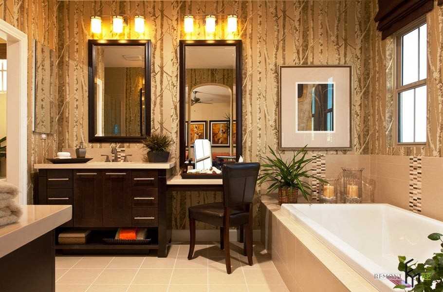 С ванной комнатой опять же все проще: как правило, помещение сделано в нескольких тонах, наличием узоров, но не более. В общей композиции в ванной меньше деталей, чем в спальне, поэтому новая мебель дополнит или разбавит ее, но не будет лишней.