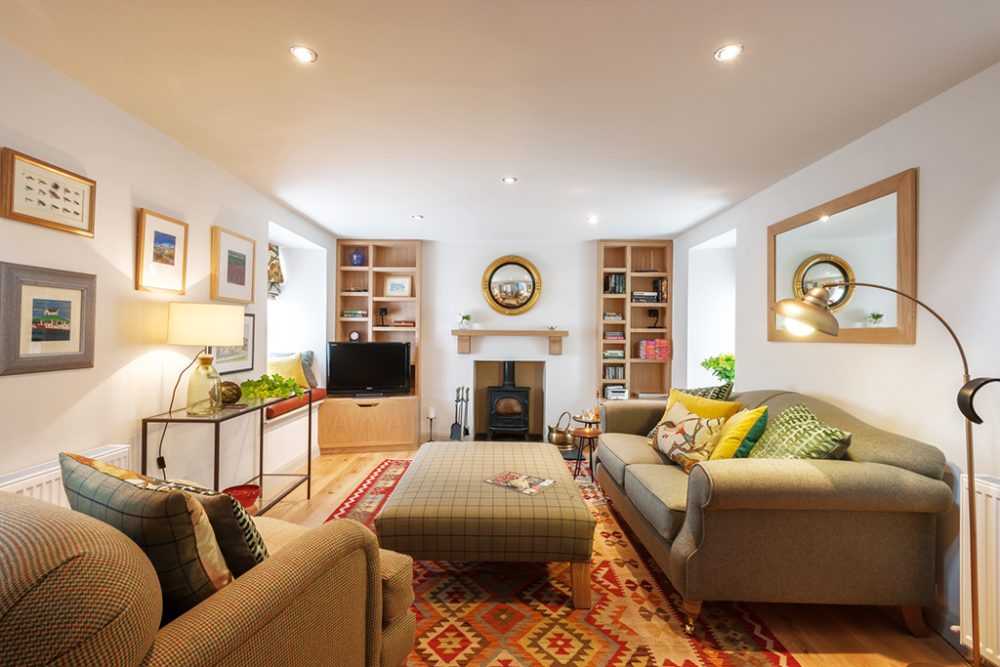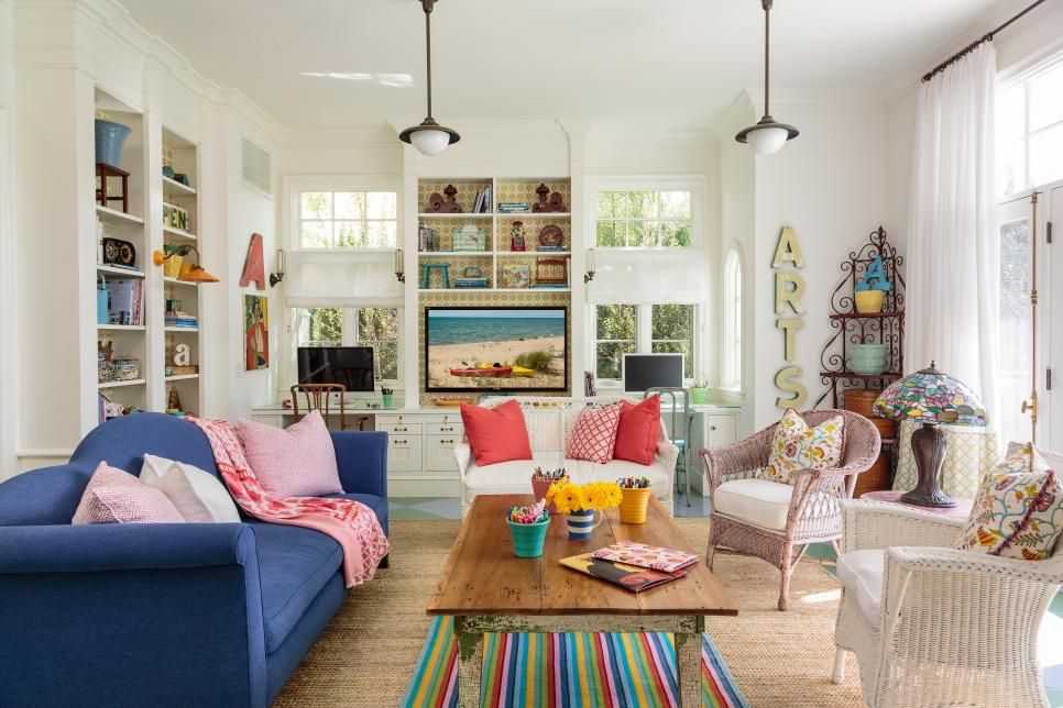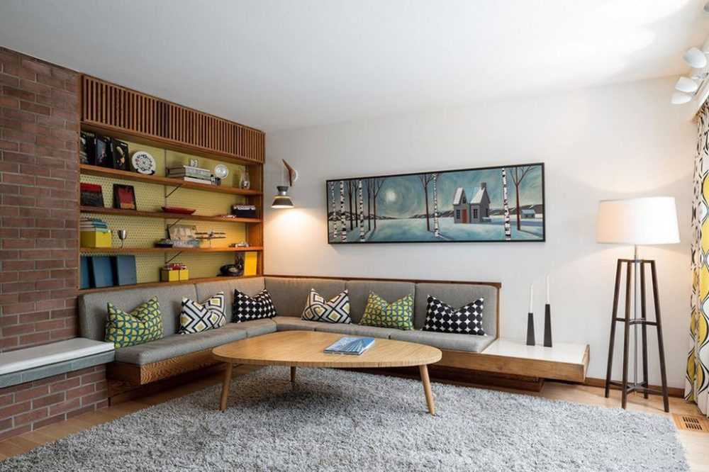 Просматривая примеры нестандартного решения, не стоит забывать, что квартира должна быть жилой. Интерьер гостиной на фото и в реальной жизни может разительно различаться. Если в доме есть малыши, нужен детский уголок, для подростка – место для занятий, пожилому человеку – удобное кресло. Девушкам понравится каминная зона – фальшивый камин легко соорудить с помощью пенопластовых блоков.