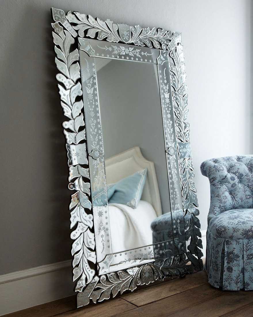 Обычно такие зеркала имеют большой вес и повесить на стену в гостиную его не получится. Необходимо размещение на полу.