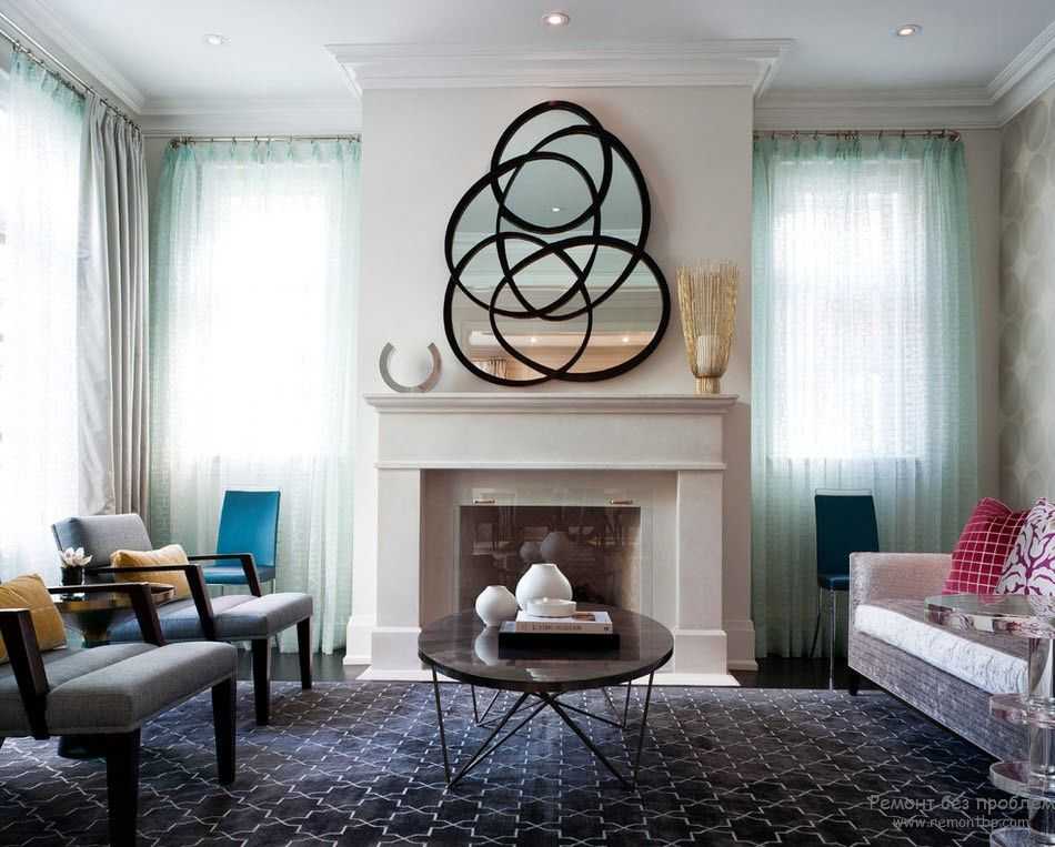 Как оформить гармоничный дизайн гостиной с зеркалами