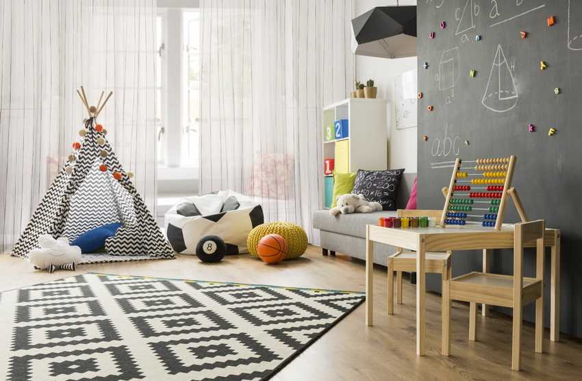 - Упор на интеллектуальное, творческое развитие ребёнка нашел своё отражение в дизайне детской комнаты. Тренд находит отзыв в использовании леттеринга (оригинального шрифта) в оформления стен, установке интерактивных досок, развивающих игровых уголков.