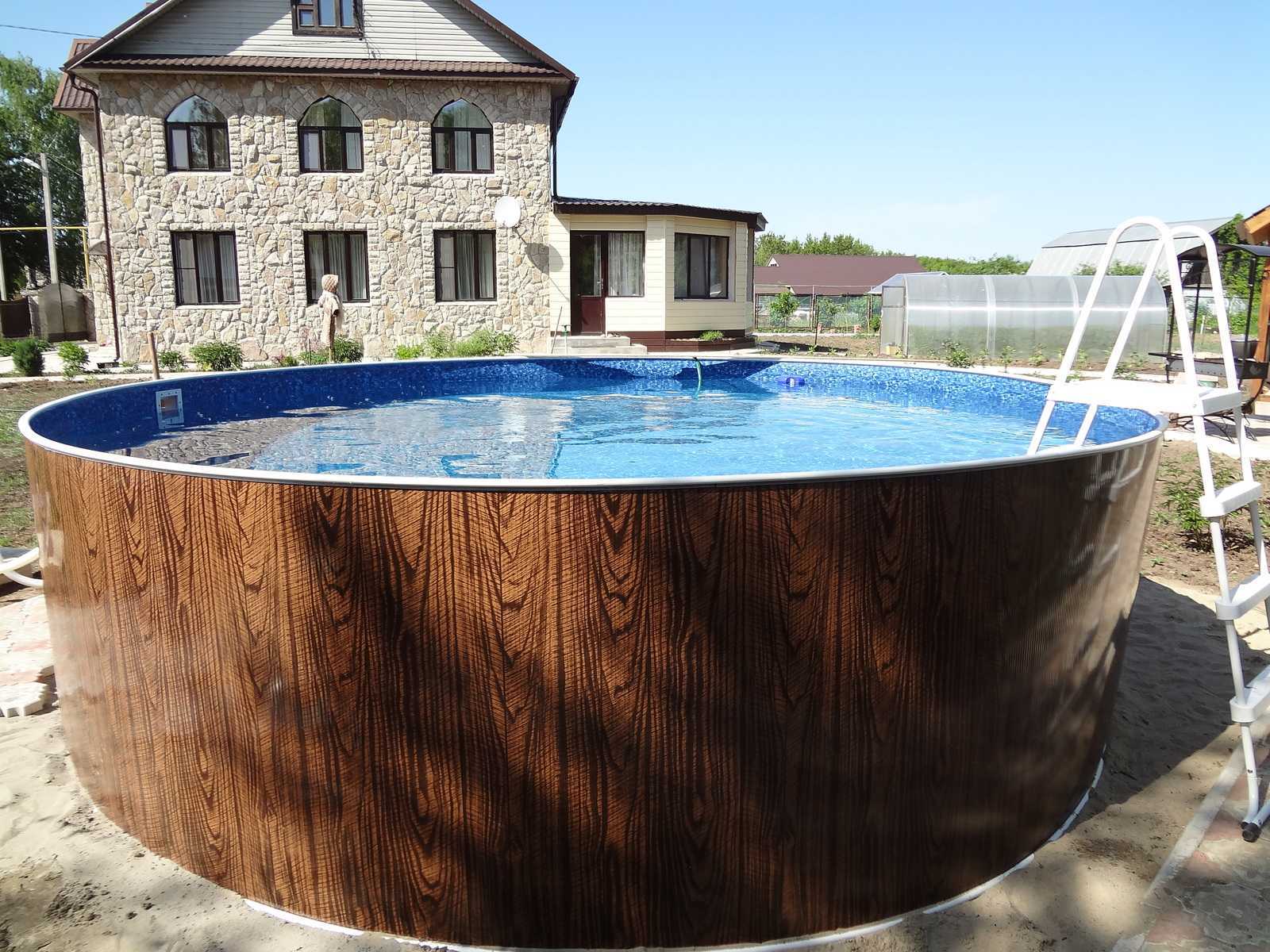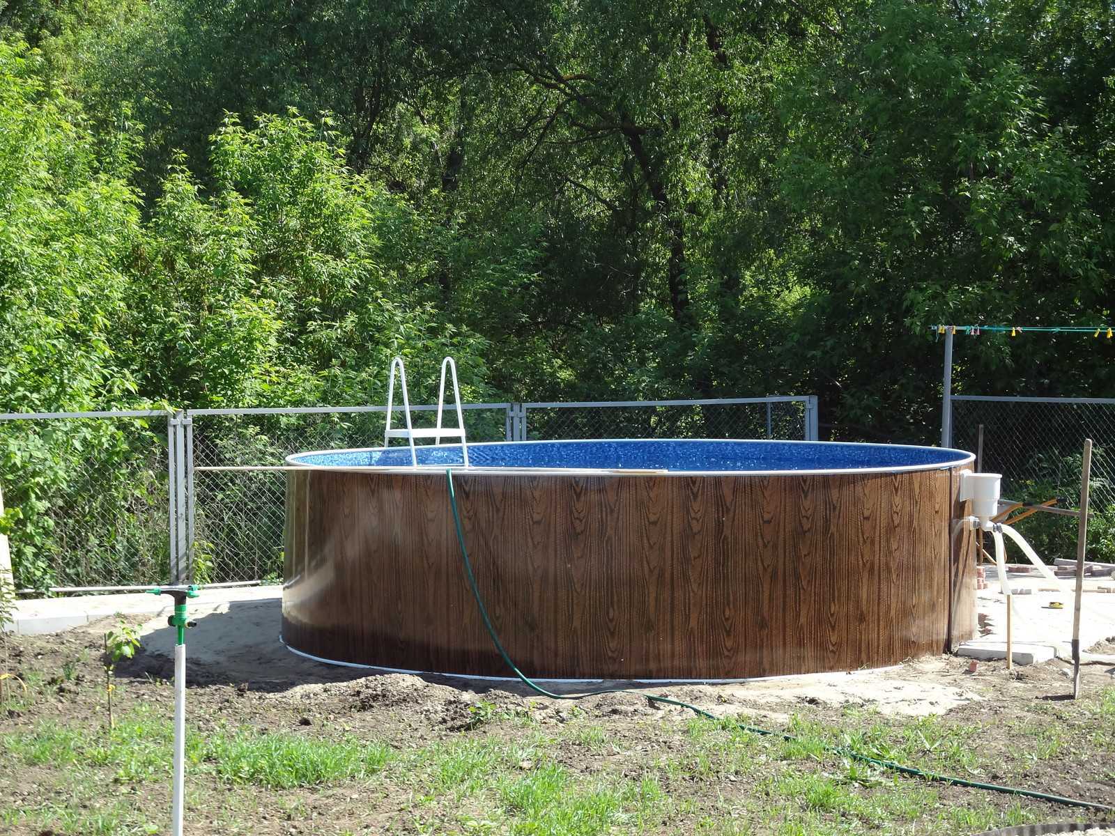 Бюджетным вариантом считается и конструкция сборного типа. Дизайн такого бассейна сложнее надувного, он имеет большие габариты, требует тщательной подготовки места перед установкой.