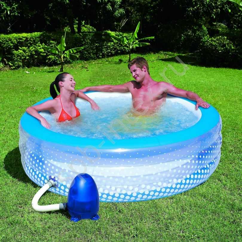 Надувные бескаркасные. Такие бассейны вполне подойдут для 1 – 2 маленьких детей. Они легко прогреваются, имеют небольшую глубину, мягкие стенки. Для максимального удобства рекомендуем приобрести электрический насос и расположить бассейн вблизи от источника воды.