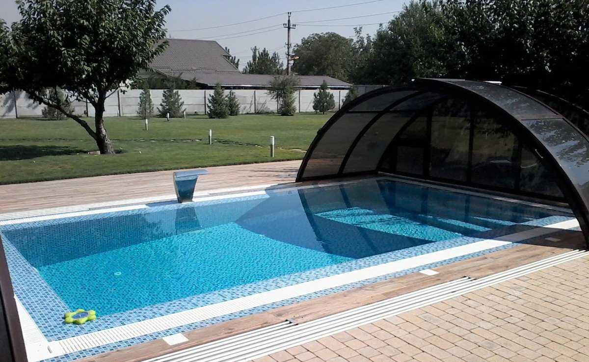 Дизайнеры предлагают совместить преимущества крытого и открытого бассейна и сделать комбинированный. В этом случае часть бассейна находится в помещении, а часть под открытым небом. Открытую водную поверхность защищают от атмосферных осадков раздвижной крышей, шатровой или купольной.