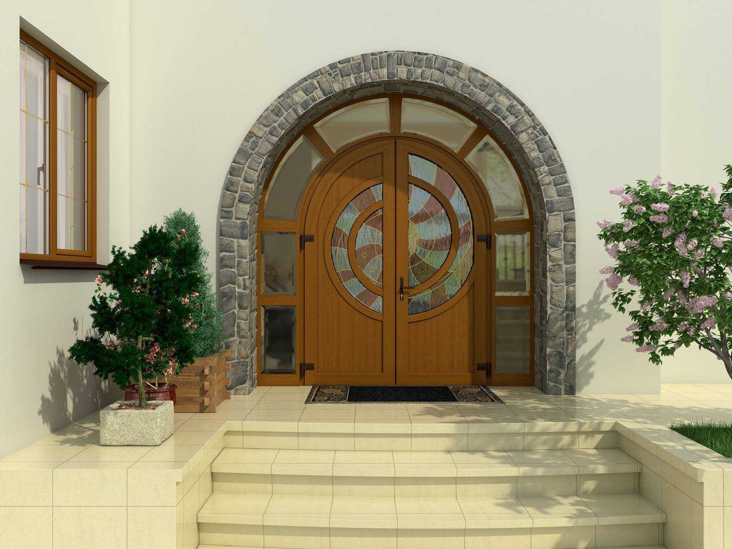 Подобные конструкции входной двери встречаются нечасто, но, безусловно, являются оригинальным способом не только разнообразить конструктивные особенности входа в помещение, но и возможностью оформления достаточно широкого дверного проема.