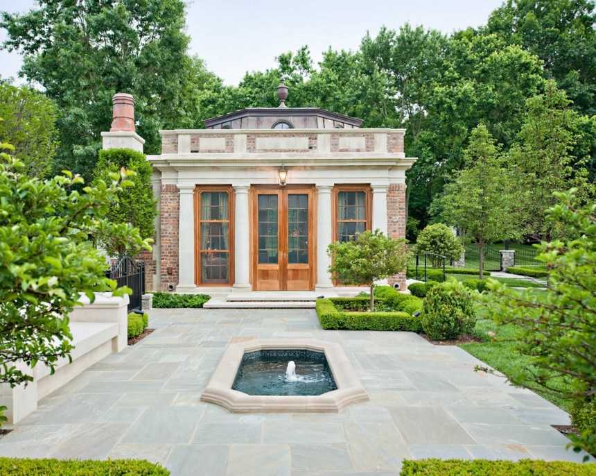 Основа строительства и оформления — именно архитектурный стиль, дизайн двора перед домом начинается с него. Характеризуется такое направление своей торжественностью, четкостью линий, соблюдением геометрических форм. Все должно быть четко и максимально просто
