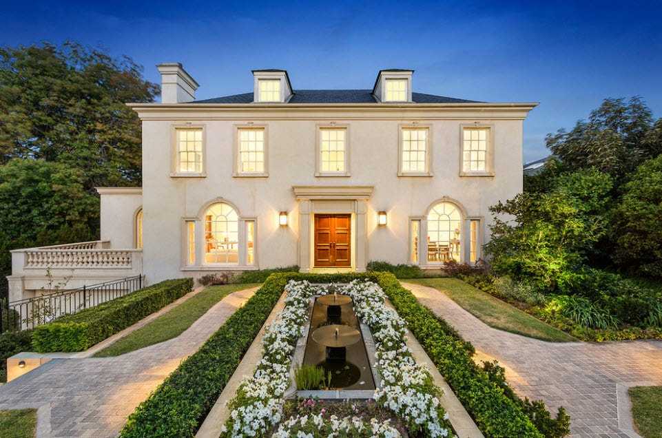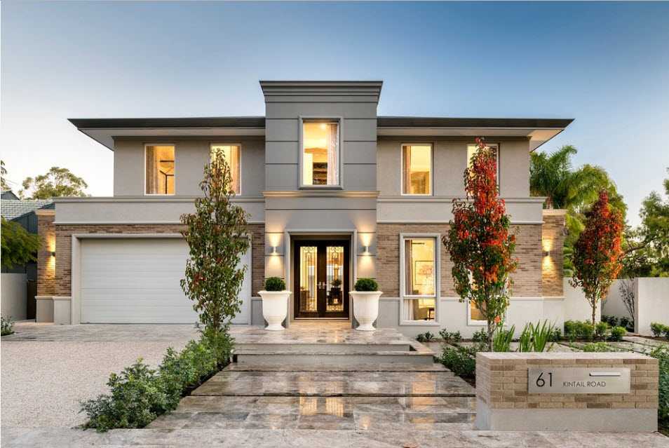 Таким образом, красивый фасад двухэтажного дома и стена, выступающая ограждением участка, образуют общую функциональную конструкцию и дизайнерское решение. Они дополняют друг друга, и в отдельных местах становится непонятно, это еще ограждающая конструкция придомовой территории или уже фасадная часть здания. Еще больше интегрировать элементы друг с другом удалось за счет стилизации стены под фасад, например – обустройство проемов, имитирующих открытые панорамные окна.