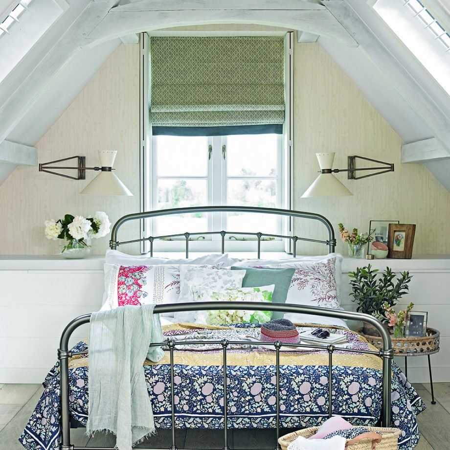 Стиль, полный романтизма, тепла и уюта. При оформлении спальни на мансарде в стиле прованса используют: