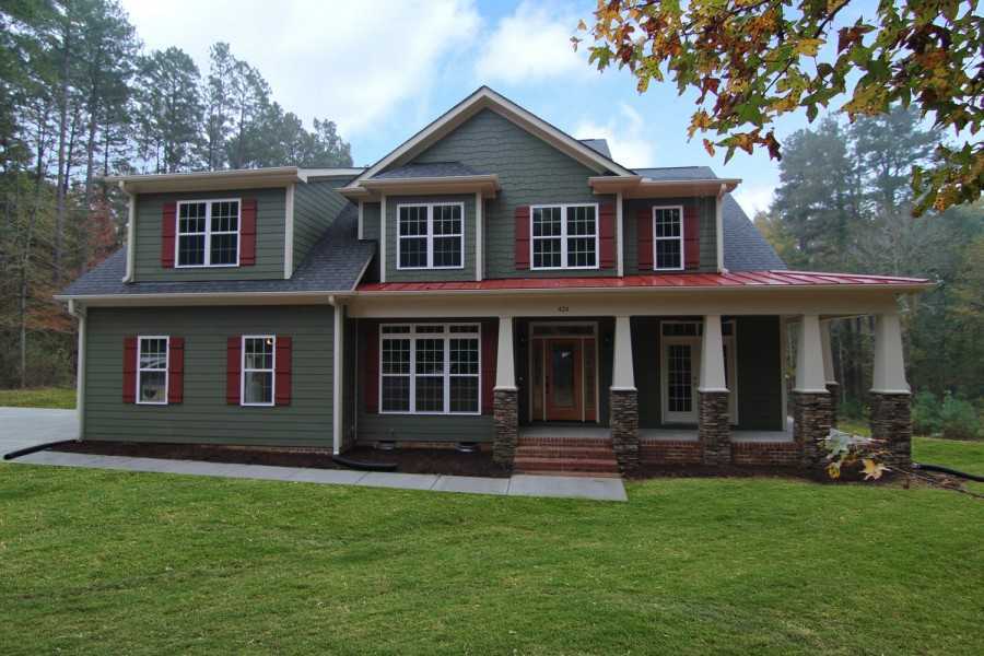 Несмотря на стандартное сочетание – каменный низ, деревянный верх, вариантов отделки очень много. Первый этаж и цоколь можно обшить цокольным сайдингом, облицевать стены декоративной плиткой под камень или, например, основную площадь оштукатурить и покрасить в белый цвет, а углы и цоколь выделить искусственным камнем.