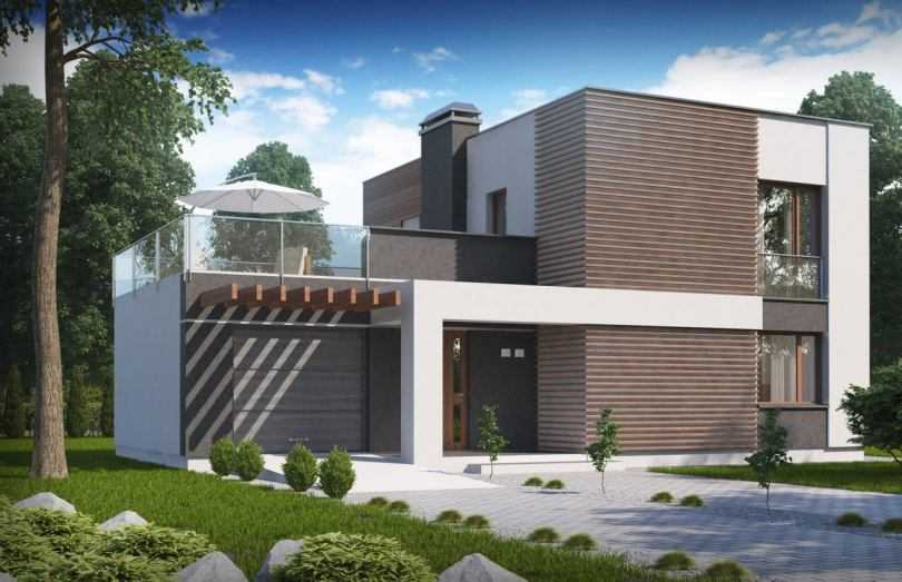 Дом в стиле хай-тек с отделкой из дерева