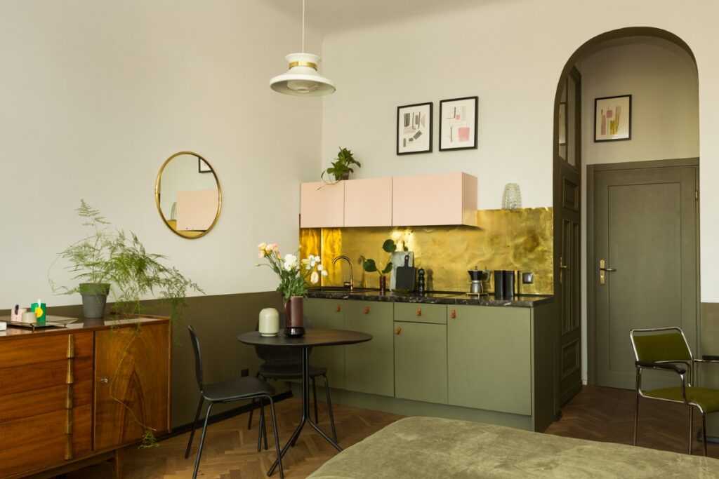 Модной тенденцией являются такие тона, как фисташковый и оливковый. Чистый зелёный в действительности довольно редко можно увидеть в оформлении квартиры, поскольку потребность в нём обычно удовлетворятся пейзажем за окнами.