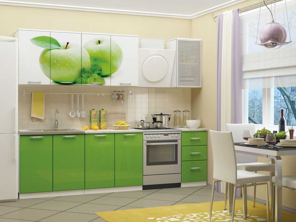 В этом случае наиболее правильным решением будет установка мебельной стенки для кухни с нужным нам окрасом зеленого цвета.
