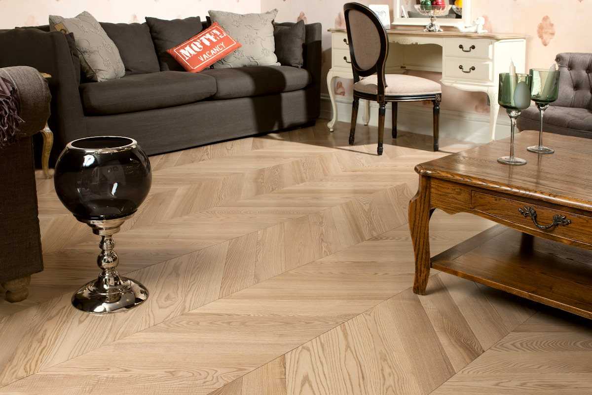 Для создания классического интерьера важно воссоздать натуральность древесины. Хорошо подойдет имитация паркетной планки, выложенной «елочкой». Необходимо наполнить атмосферу изысканностью