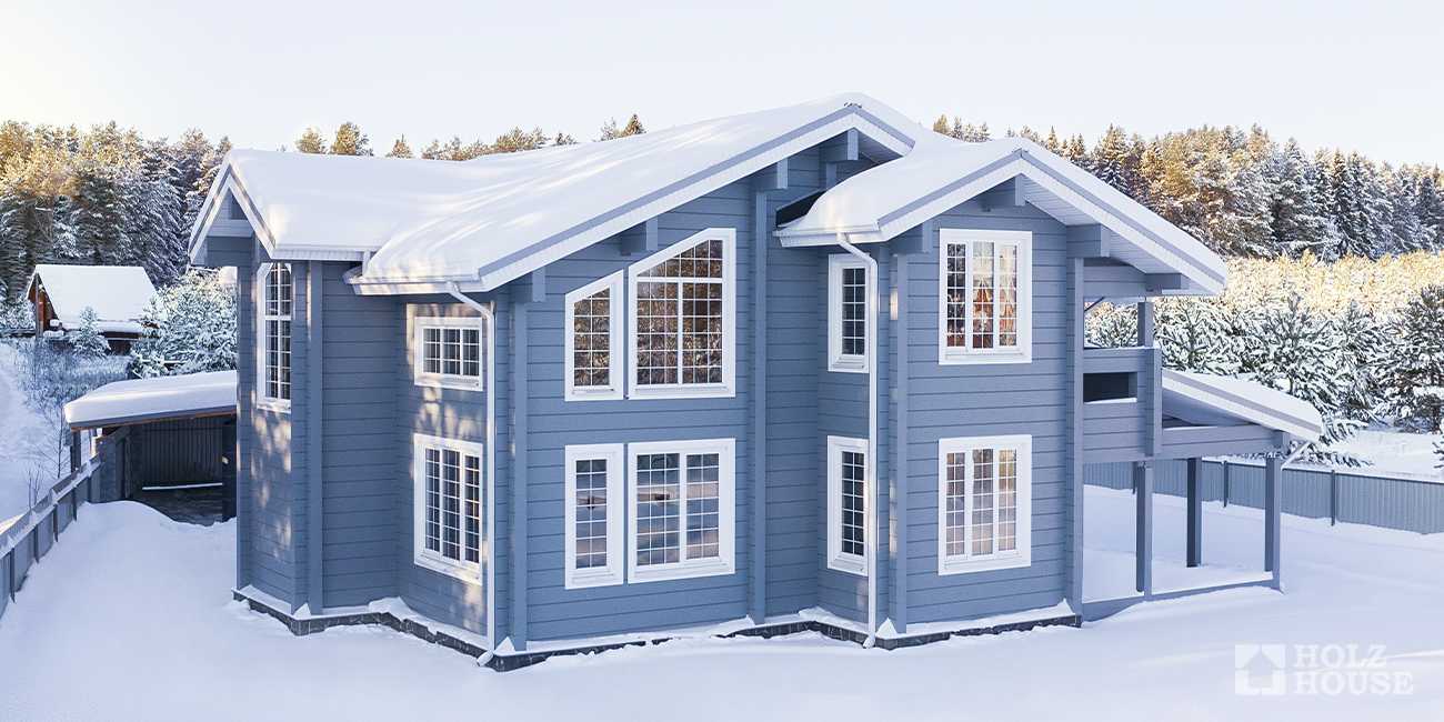 Интерьеры деревянных домов сохраняют натуральную отделку клееным брусом, предполагают отсутствие лишних деталей, светлые цвета и наличие больших окон, чтобы максимально продлить световой день. Конструкция дома отличается простотой форм и сдержанностью. Крышу, как правило, делают двускатной и с крутым уклоном. Скандинавскому стилю свойственно наличие в доме большого крыльца и открытой террасы.
