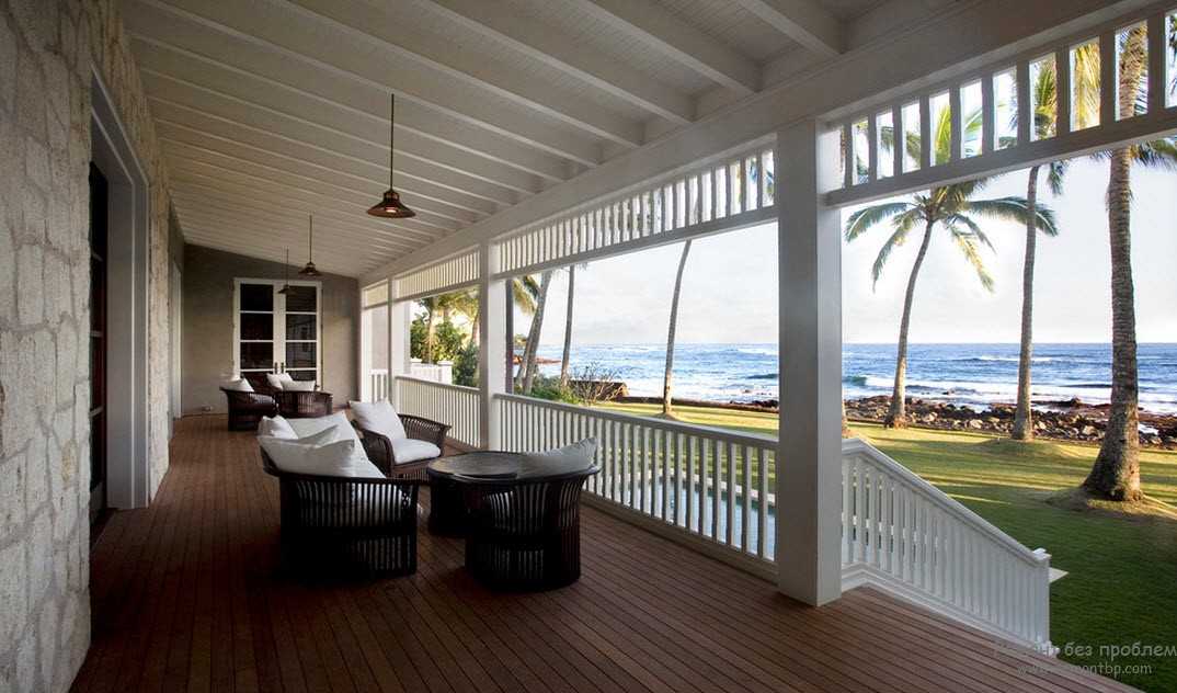 Дизайн. Тут все очень сложно: вы можете выбрать как контрастное отличие от остального дома, так и сделать интерьер веранды таким, чтобы он продолжал дизайнерский ансамбль интерьера дома. Но, допускать полумер здесь нельзя, иначе веранда будет смотреться жалкой пародией, на внутреннее убранство самого дома. Если дом выполнен в традиционном стиле, то веранда должна быть или такой же, или «гламурной». Если дом имеет интерьер «хай-тек», то веранду лучше сделать в деревенском стиле или же продолжить «хай-тек».