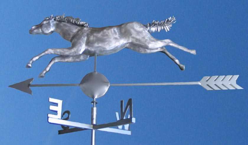 Флюгер в форме коня подойдет целеустремленным людям с активной жизненной позицией. Те, кто в своей жизни руководствуется рассудительностью и благородством, смогут заявить об этом окружающим, воспользовавшись этим простым и изящным решением.