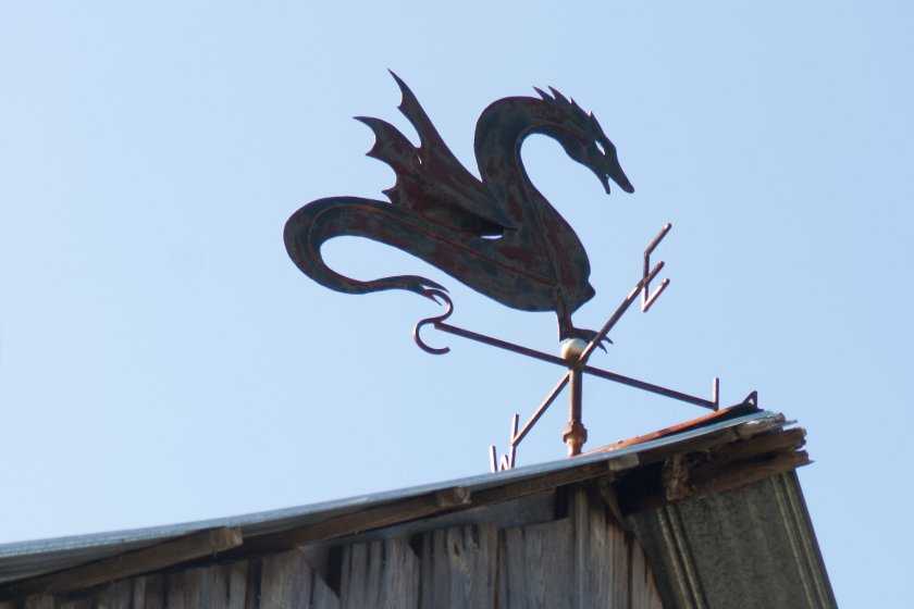 В странах Азии часто встречаются флюгеры в виде драконов. Дракон олицетворяет мудрость, и флюгер с его образом также несет функцию оберега.