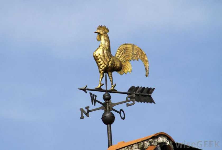 - Флюгер из металла или меди в виде петуха по верованиям предков отгоняет от дома злых духов, защищает обитель от пожаров, ограблений и любых вражеских атак;