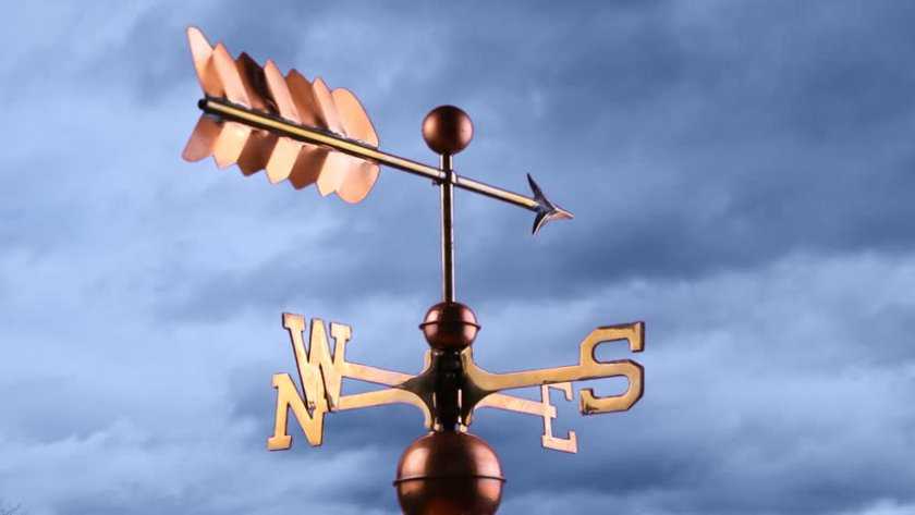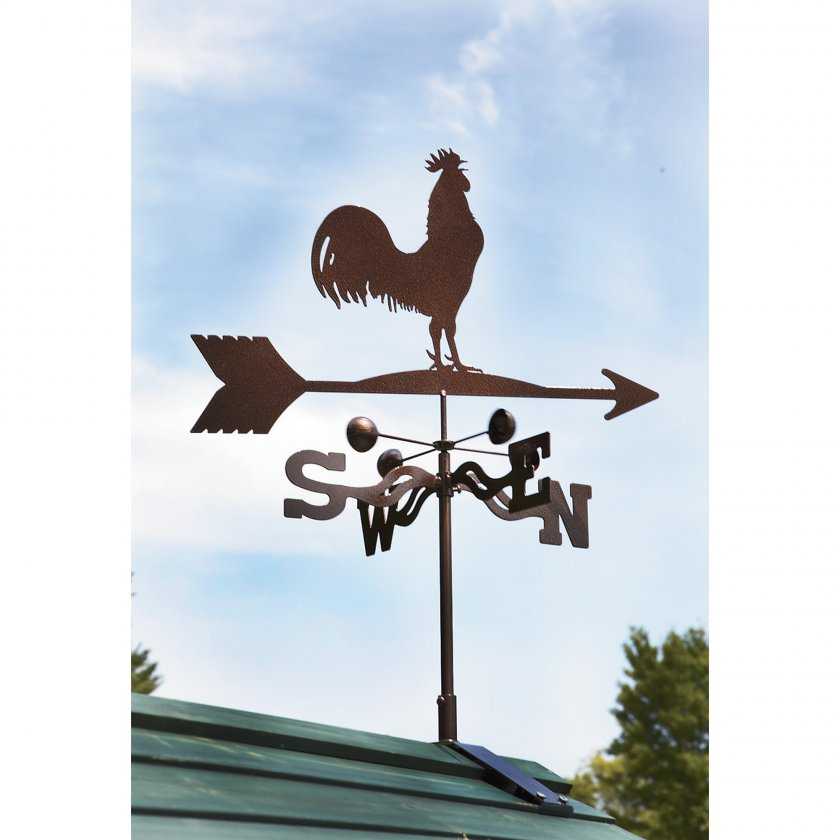 Изначально флюгеры устанавливали на крышах домов в приморских городах, чтобы, выйдя из дома, можно было узнать, куда и с какой силой дует ветер. В наше время устройство утратили практические функции и стало скорее забавным элементом декора, с помощью которого украшают дачные дома и загородные коттеджи. Любой флюгер состоит из следующих частей: