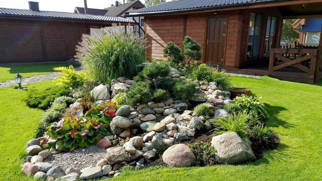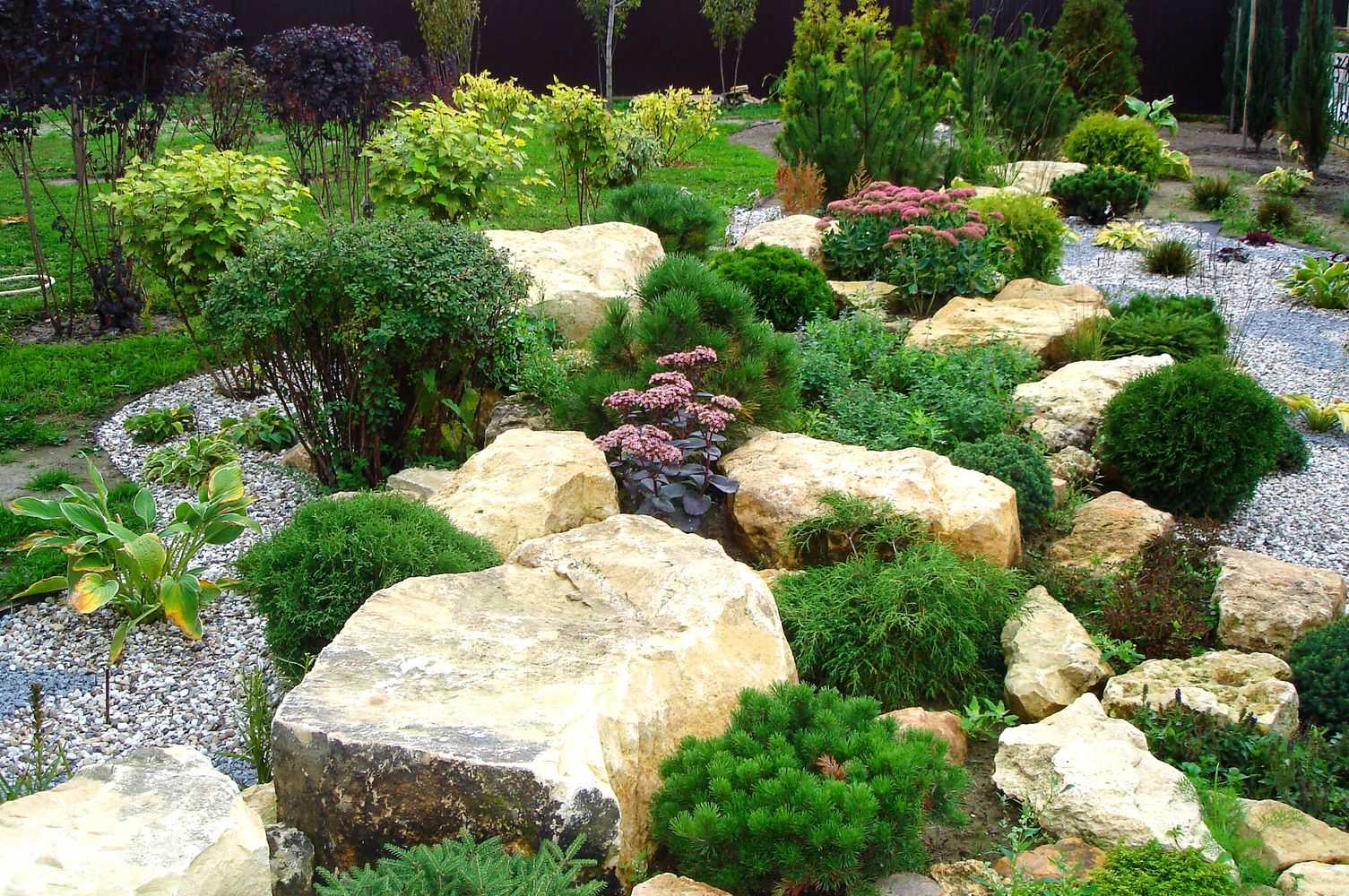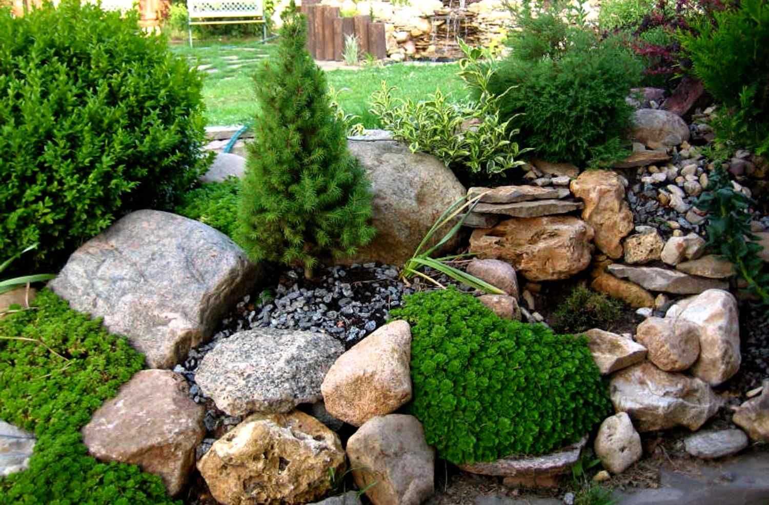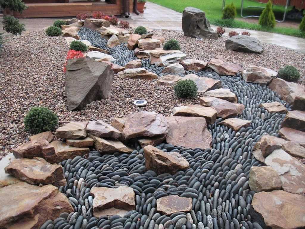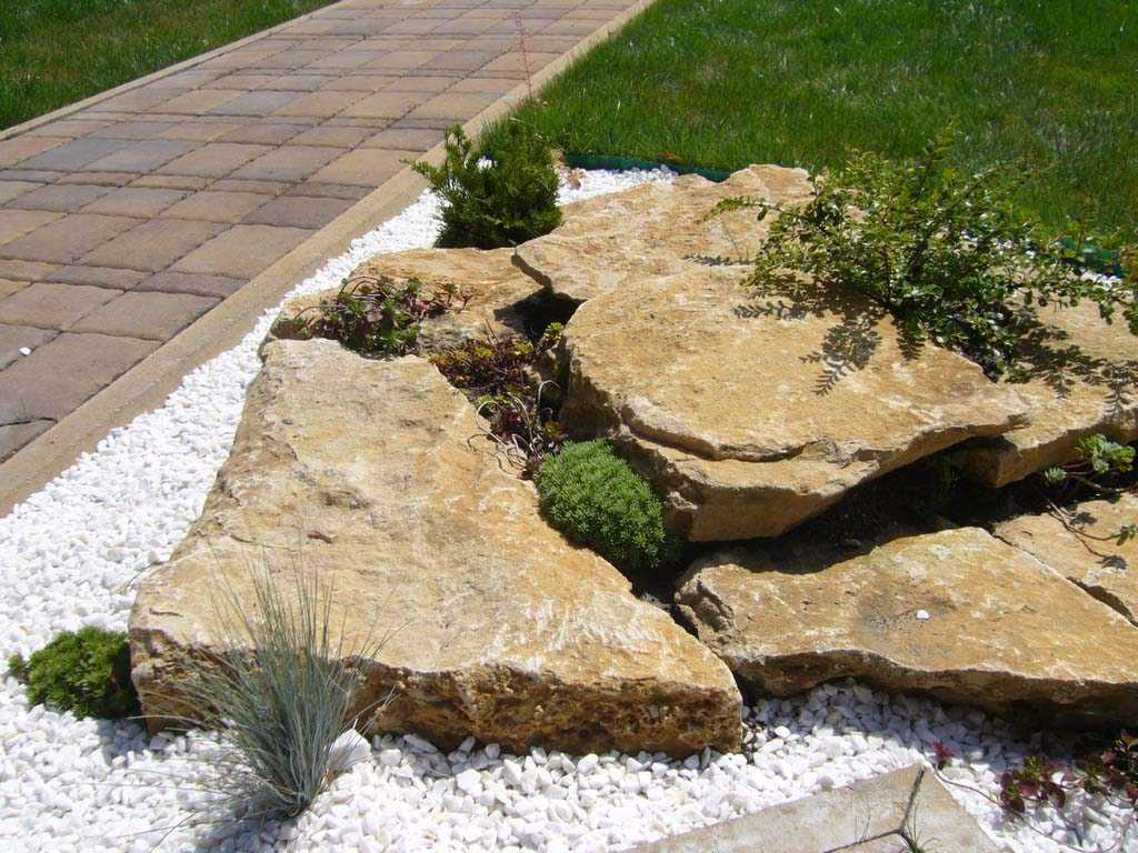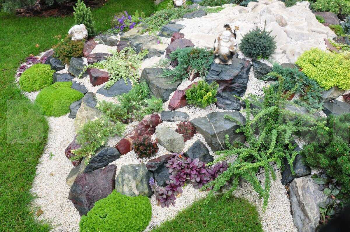 Горка с камнями на даче – это уже классика. С ее живописностью мало, что может сравниться. Вам надоел скучный газон? Разбавьте его каменной композицией из щебня разных оттенков.