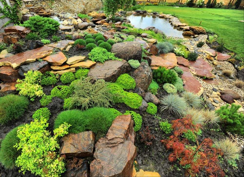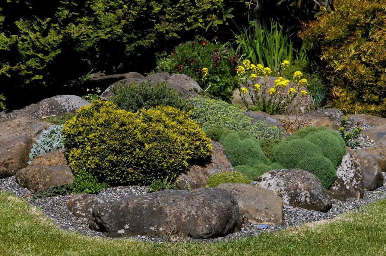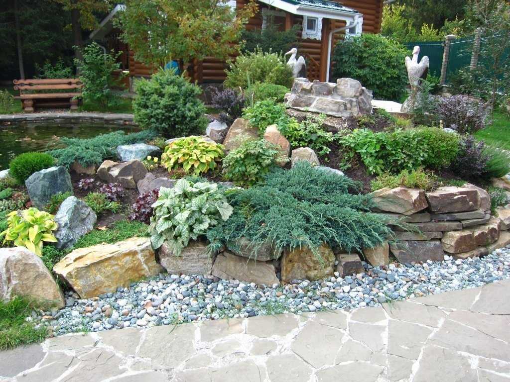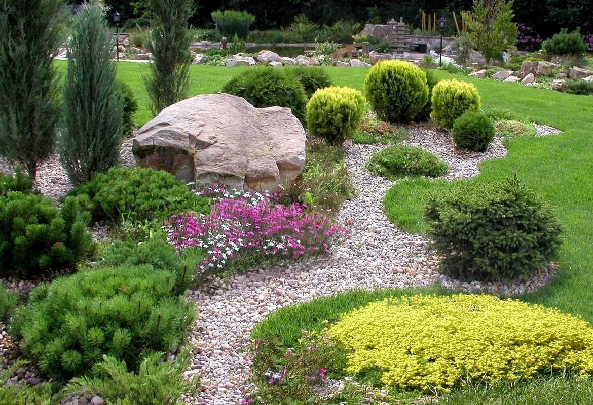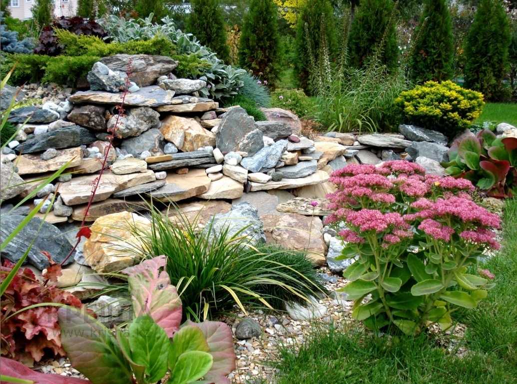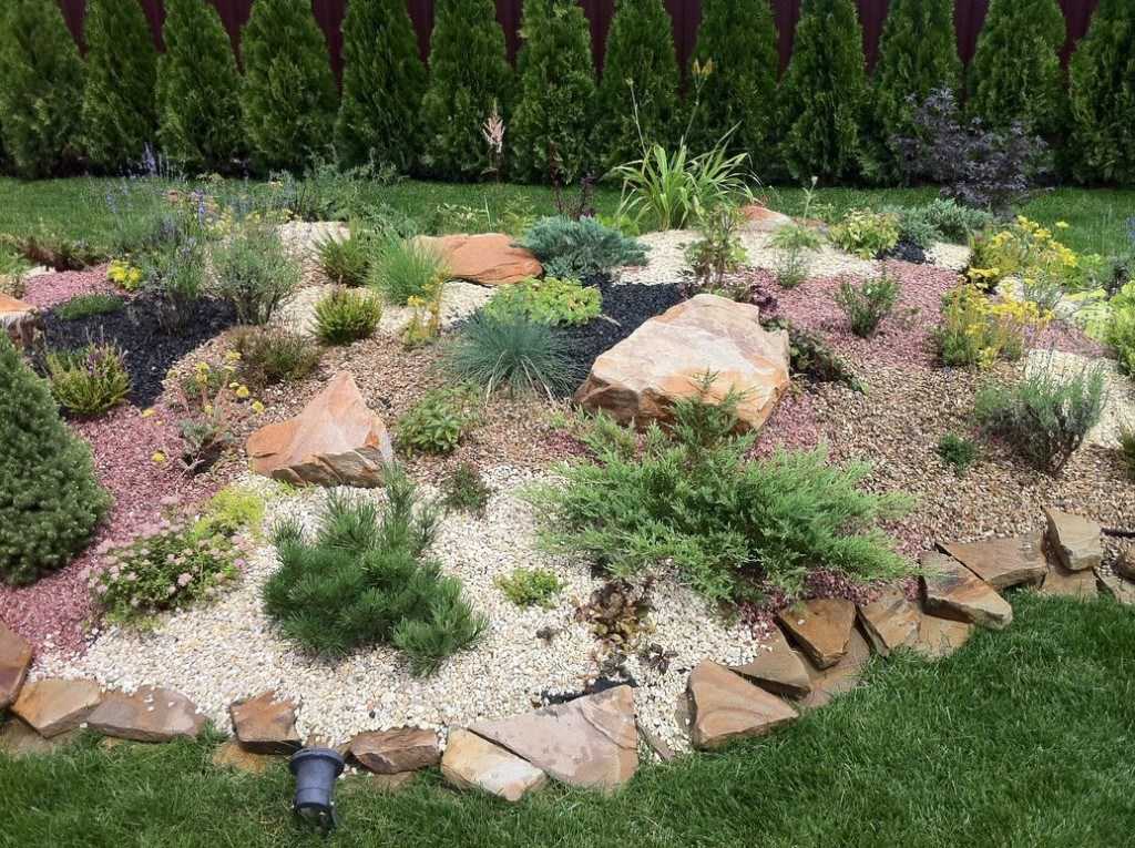 Горка с камнями на даче – это уже классика. С ее живописностью мало, что может сравниться. Вам надоел скучный газон? Разбавьте его каменной композицией из щебня разных оттенков.