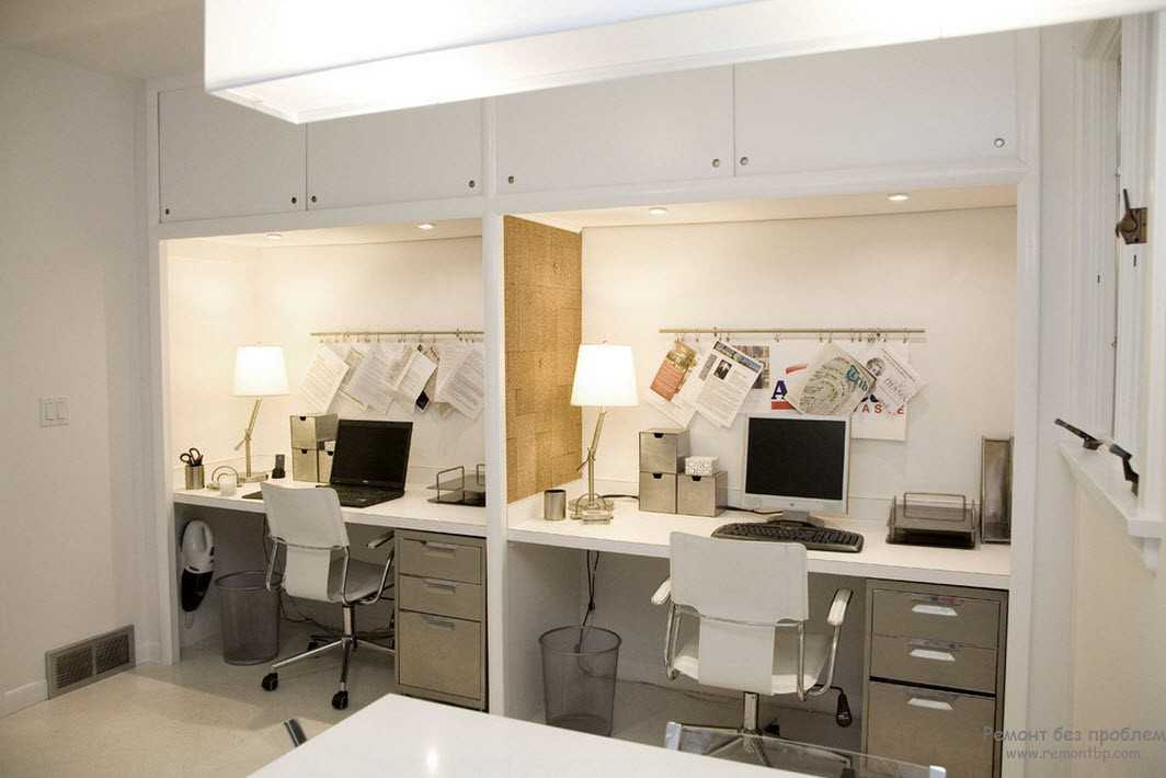 При отсутствии достаточного количества места, работникам будет не комфортно, что поспособствует снижению производительности. Желательно использовать угловые варианты мебели или применять элементы для зонирования.