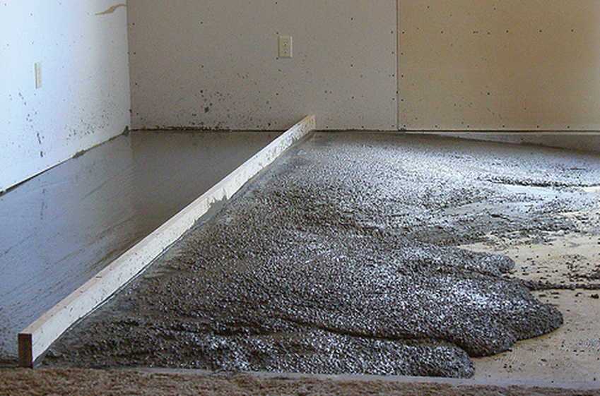 Закрыть повреждения пола можно при помощи герметика. Если этим пренебречь, то будет наблюдаться повышенный расход раствора из-за его утечки через трещины. Все крупные выступы на основании удаляют, так как поверхность чернового пола должна быть максимально ровной.