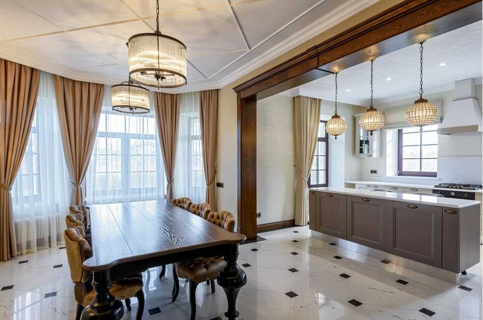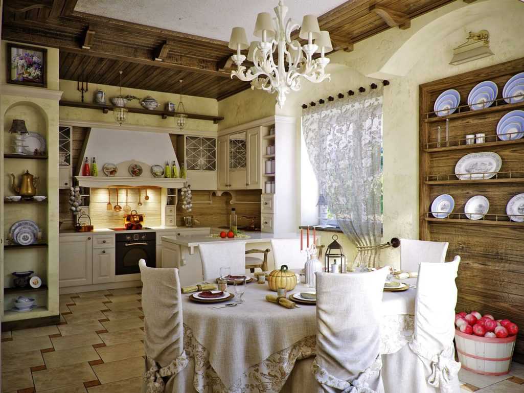 Если предполагается наличие кухни, то потребуется гарнитур (на котором будет происходить приготовление пищи). Для придания дополнительного уюта можно обустроить помещение камином (проще использовать электрический).