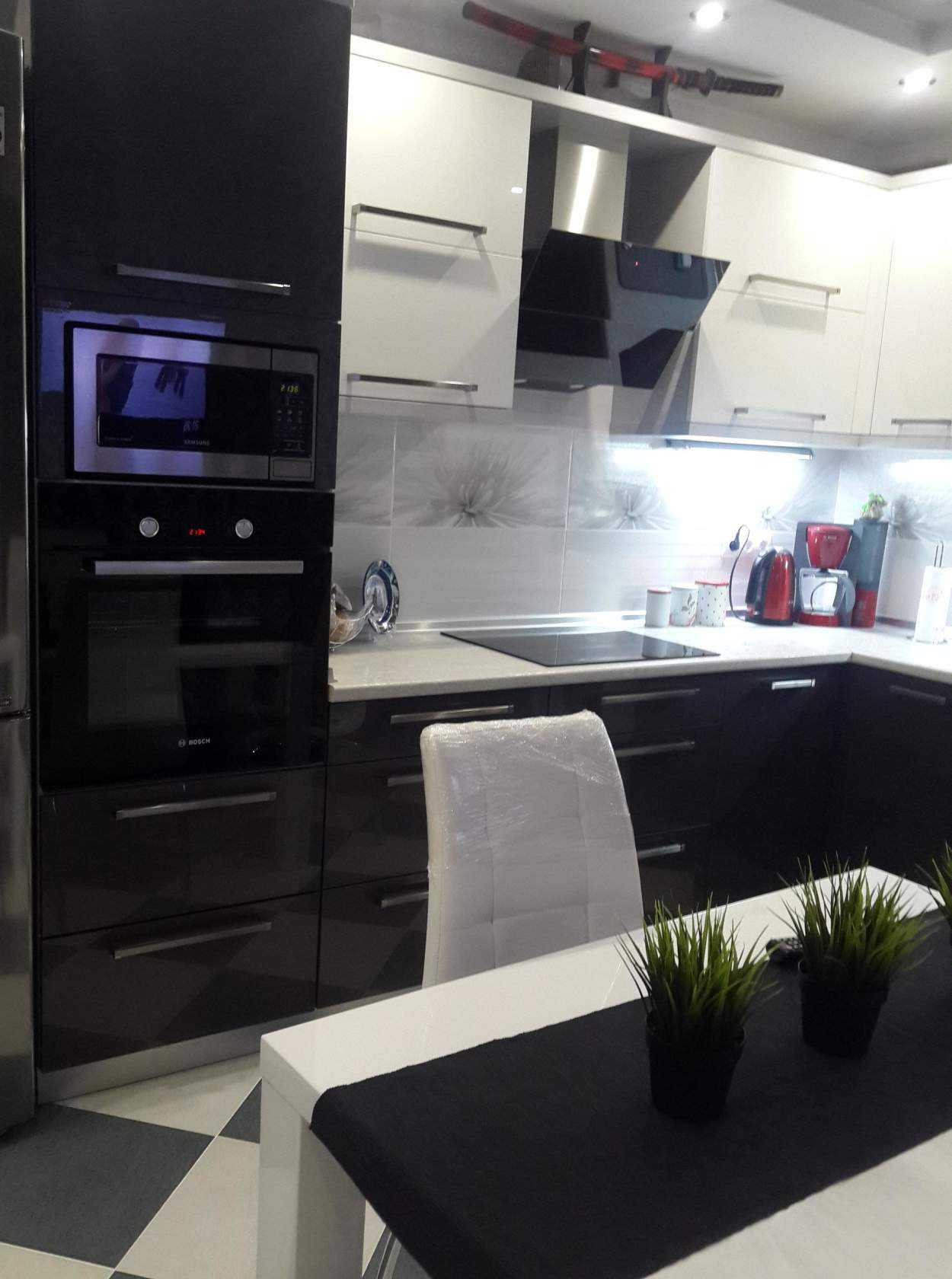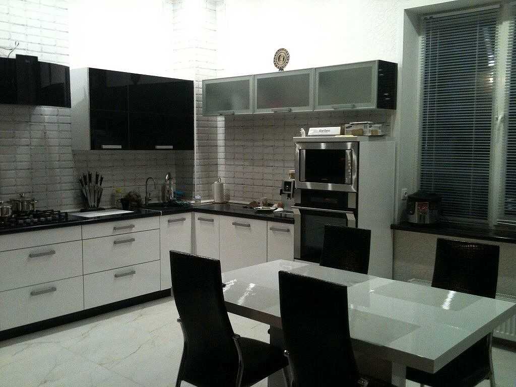 Самым удобным дополнением черного для кухонь дизайнеры называют черно-белую схему