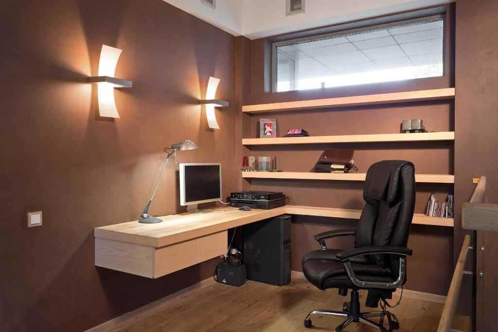 Совет! Интерьер маленького офиса оформляется при помощи светлых оттенков стен и теплого освещения, так можно создать эффект большего свободного пространства.
