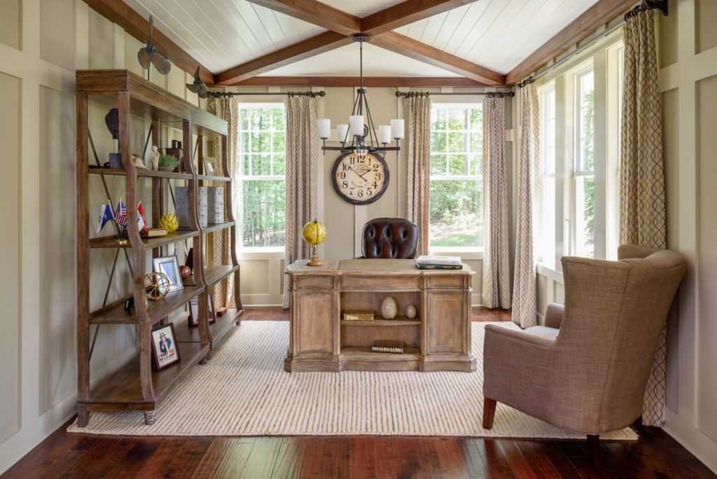 Оптимальным местом для обустройства рабочего кабинета в частном доме является мансарда. Она находится вдали от других помещений. Здесь очень тихо, с нижних этажей не доносятся никакие мешающие звуки, что позволяет работать в спокойной обстановке, не отвлекаясь ни на что.